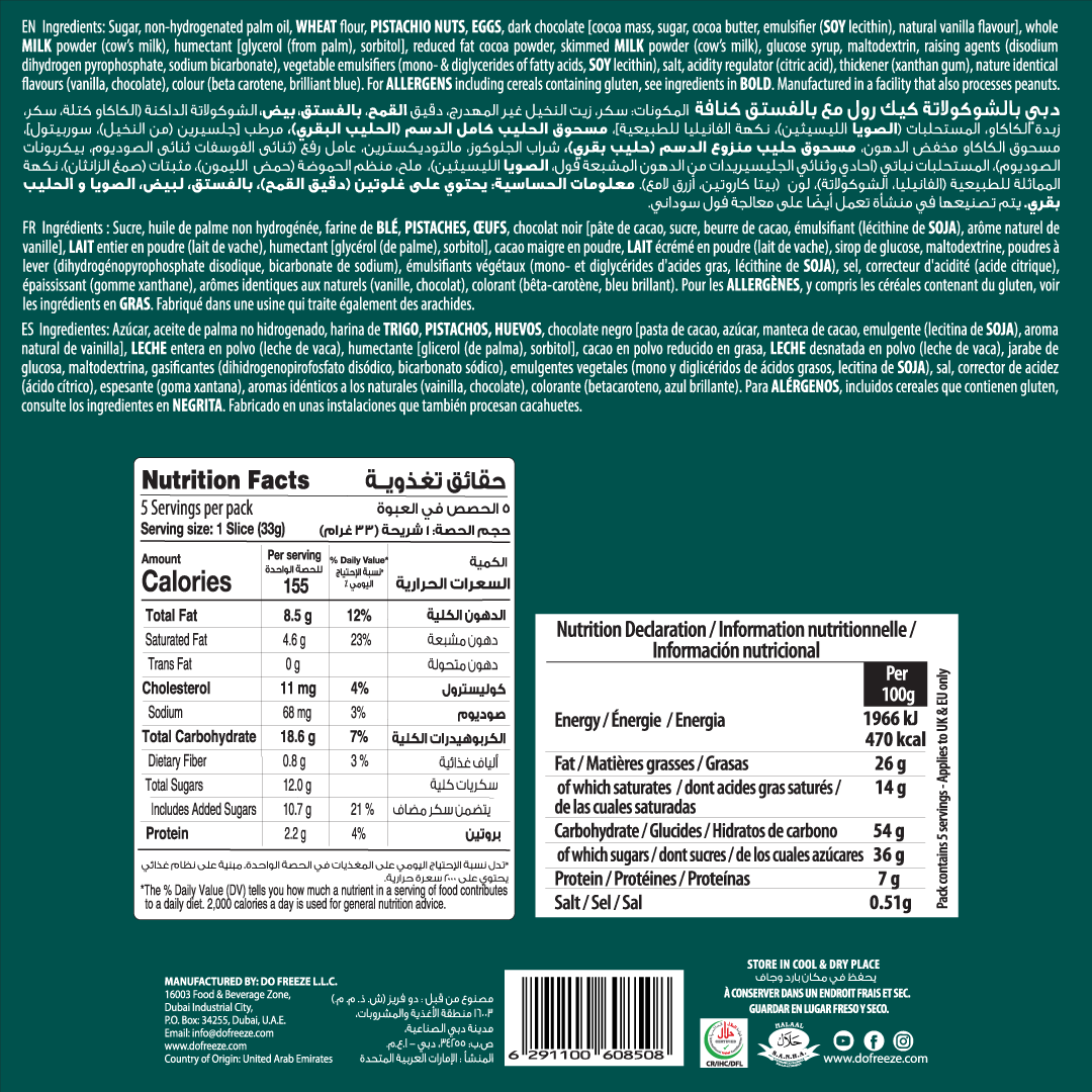 Indulge in the perfect harmony of flavors with Flair Dubai Pistachio Kunafa Chocolate Cake Roll. This exquisite dessert combines the delicate sweetness of pistachio-infused kunafa with a rich, velvety chocolate cream filling, wrapped in a soft, decadent cake roll.