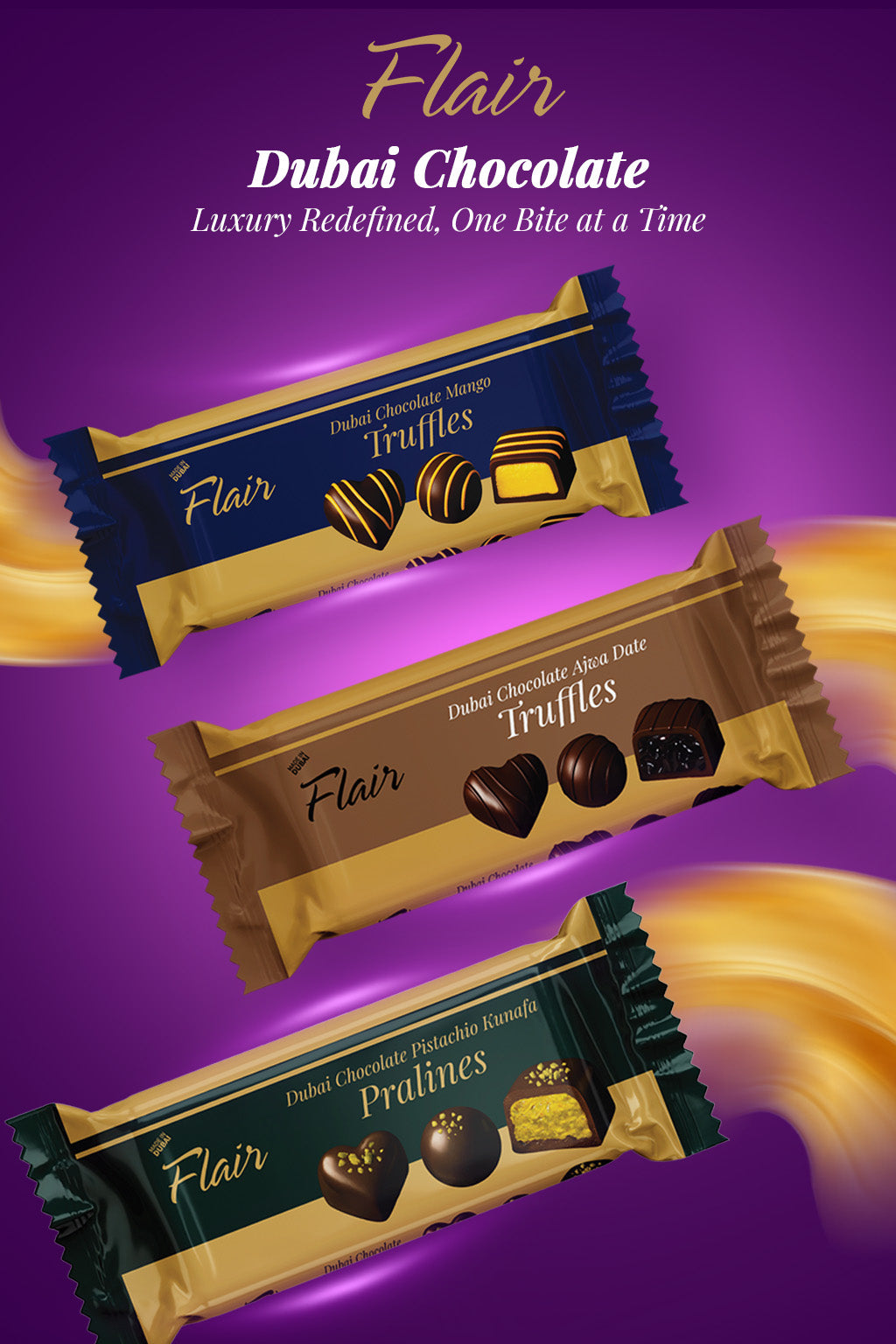 Flair is more than just Dubai’s premium chocolate, it’s a full sensory experience, born and crafted in the heart of the city. Manufactured right here in Dubai, Flair represents the bold spirit, flavor, and innovation that define the region.