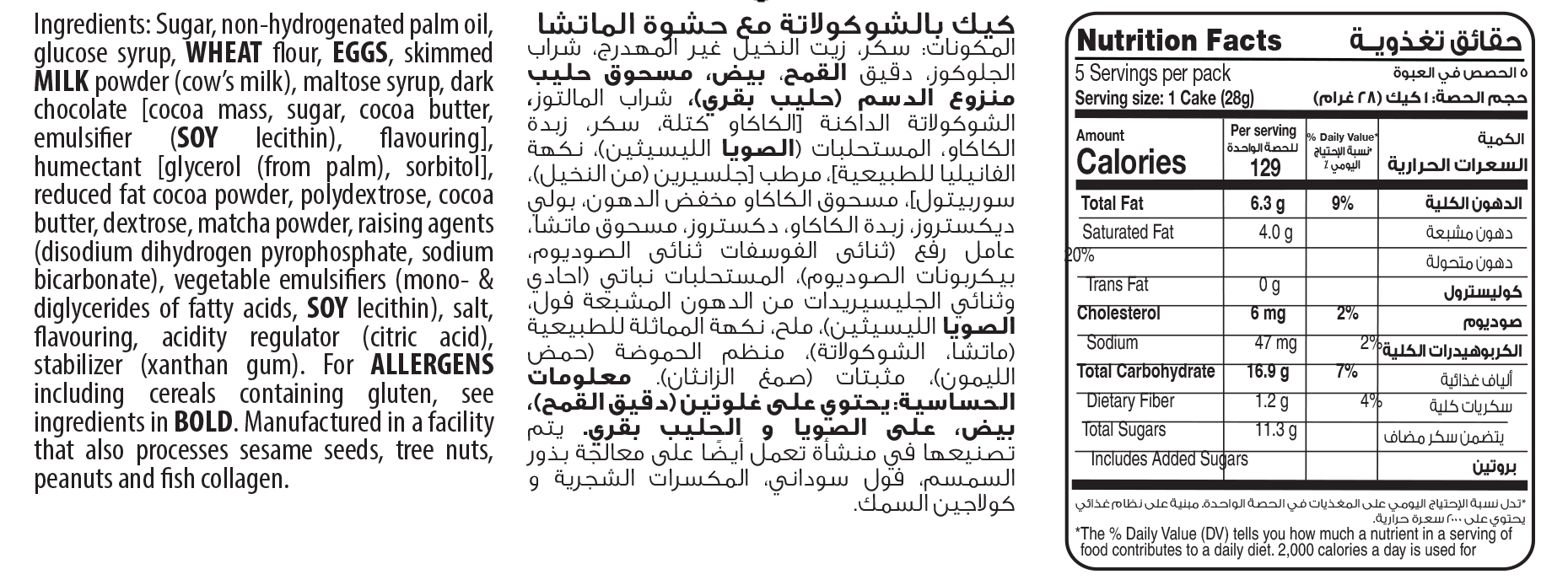 Smash Rich Matcha Coated Cake Bar 5pc/pack - 140gm
